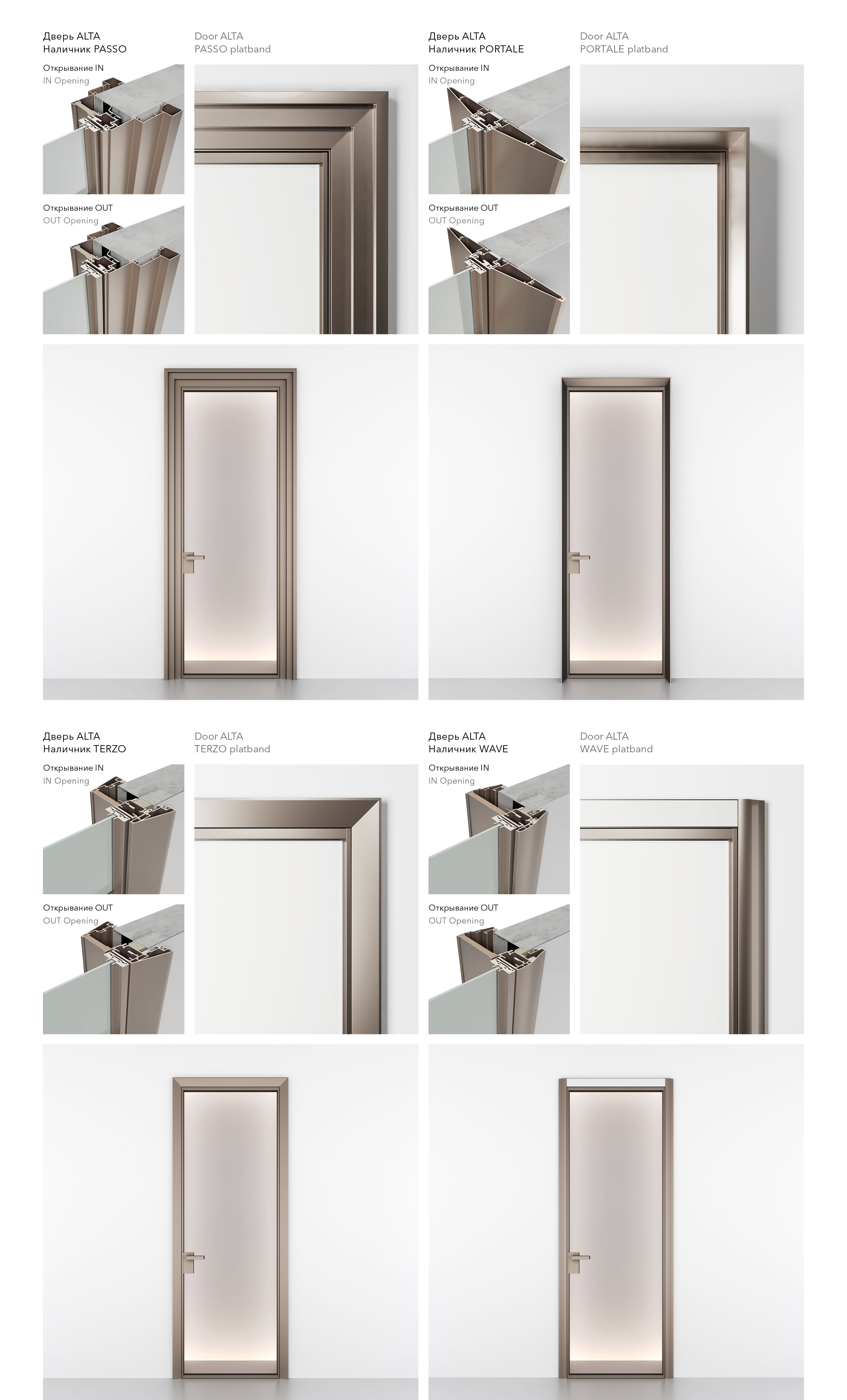 Двери с наличниками, без наличников, раздвижные.