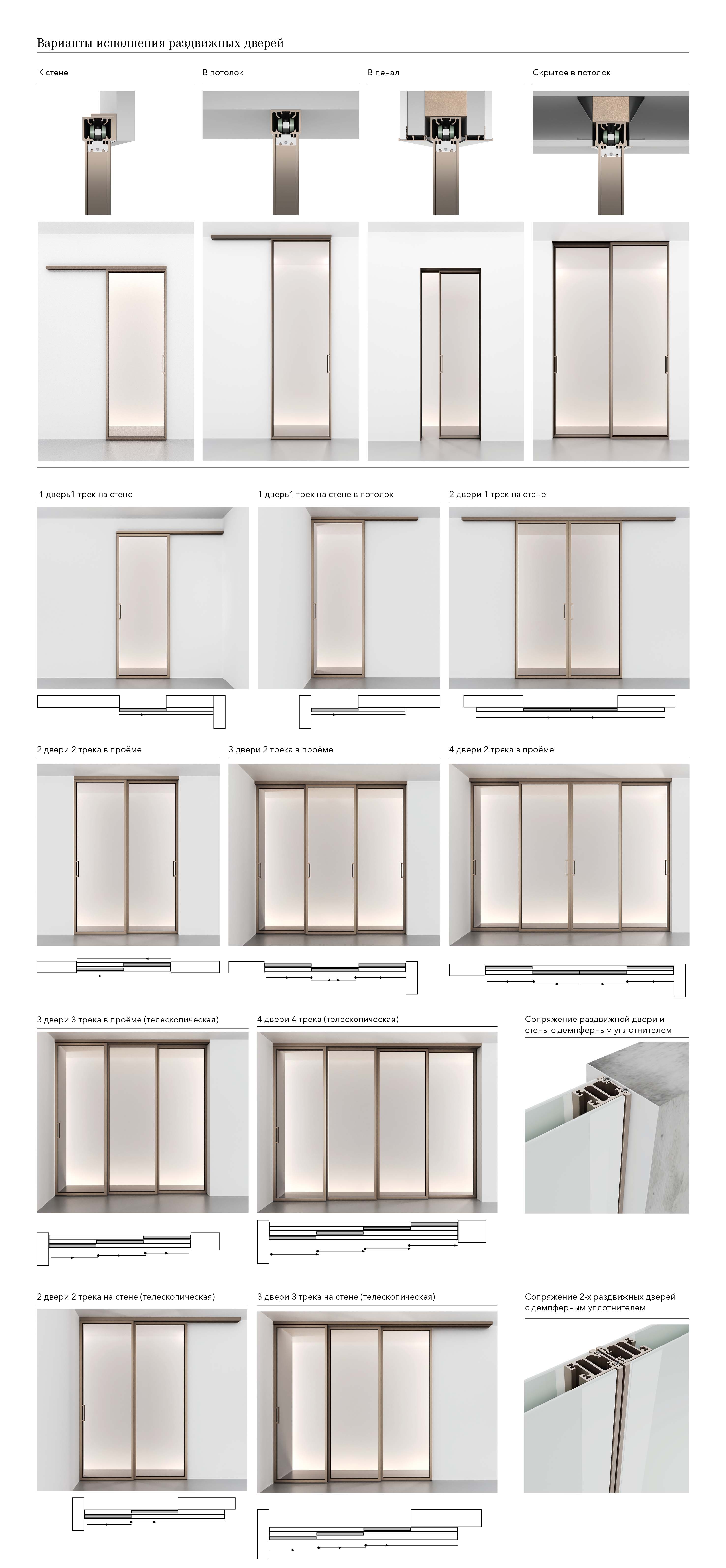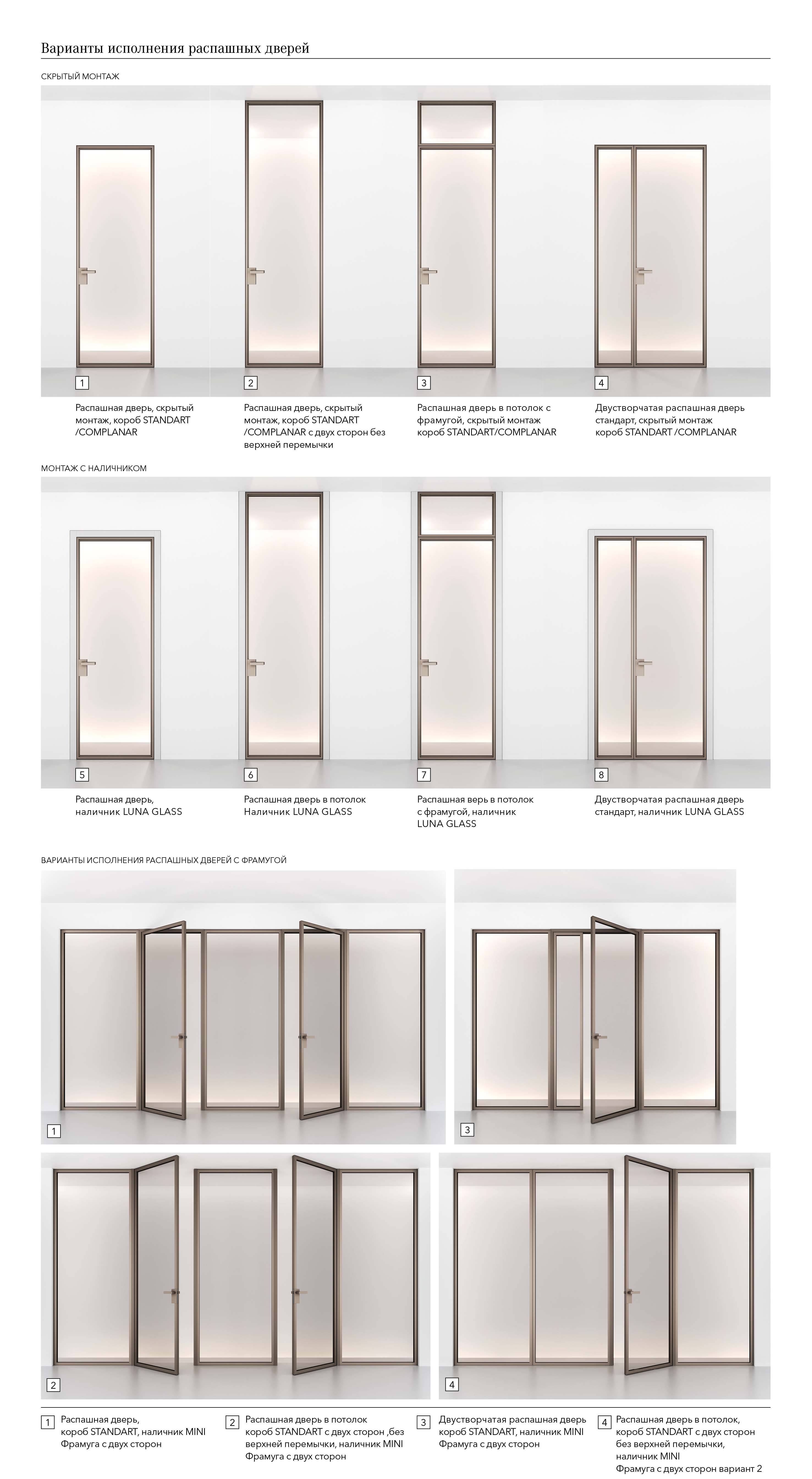 Двери с наличниками, без наличников, раздвижные.